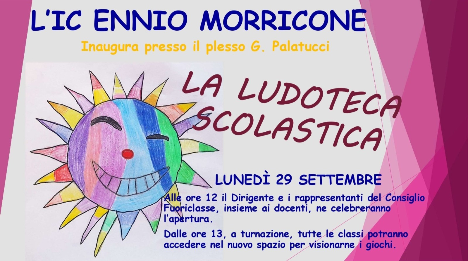 “Giocare è una cosa seria!” Per questo l’I.C. Ennio Morricone inaugura, nel plesso G. Palatucci, un nuovo spazio: la ludoteca scolastica. Un’idea frutto della partecipazione degli alunni alla vita comunitaria della scuola e concretizzata attraverso il progetto di Save the Children “Fuoriclasse in Movimento”, svolto e concluso nell’a.s. 2024-2025. Lunedì 29 settembre il Dirigente Paolo Lozzi, i bambini e tutto il personale scolastico ne celebreranno l’apertura.